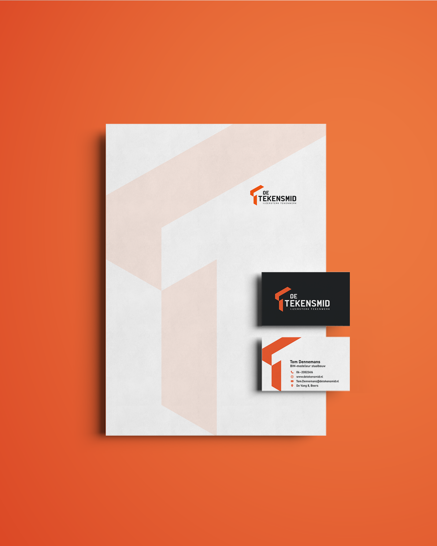 Voor De Tekensmid heb ik de complete branding mogen ontwerpen. Het is gemaakt in een technische en professionele stijl, helemaal passend bij de rol als technisch tekenaar van De Tekensmid met een stoere, industriële uitstraling.